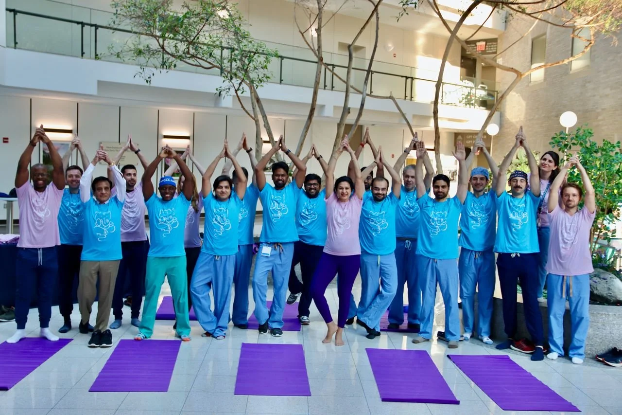 Dr. Annapoorna Kini, the Director of the Cardiac Catheterization Laboratory and Interventional Cardiology Fellowship Program at The Mount Sinai Hospital is a leader in promoting yoga to physicians and staff at the hospital. In 2020, she was appointed Associate Director of Wellness for Mount Sinai Heart. She has hosted yoga sessions for each year for International Yoga Day on June 21st, a 5k Run & Yoga event in Central Park for the last 7 years and several holiday yoga sessions for Mount Sinai Heart employees and their families. She is now beginning a yoga program for Fellows to encourage balance, wellness and education. Last December Dr. Annapoorna Kini debuted her “Yoga for the Interventionalist” video series, as you can see in the videos on this page.